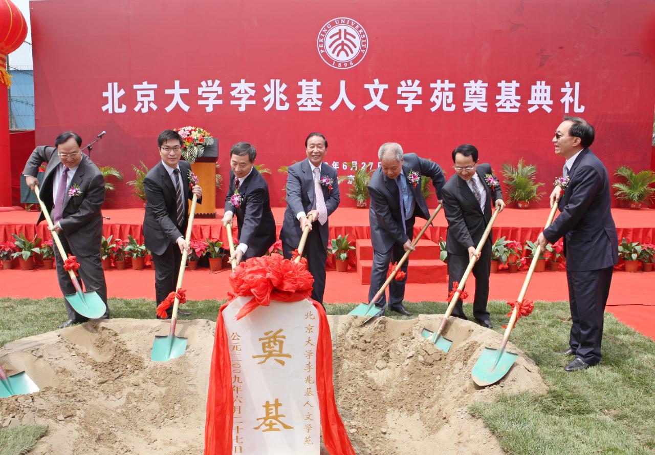 2009年,李兆基博士為北京大學人文學苑培土奠基